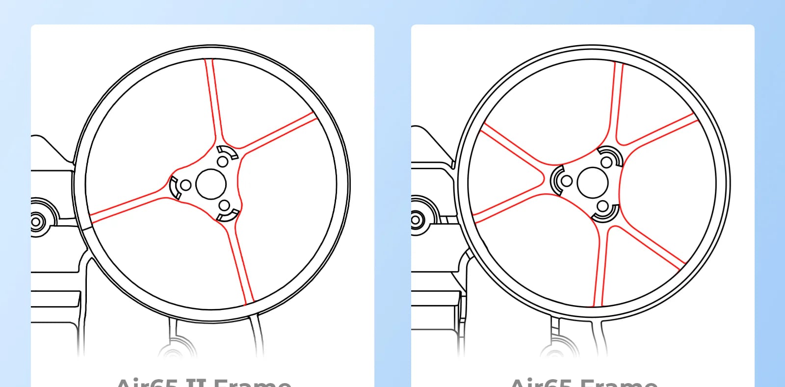 アームブレースが 6 個から 4 個に減少し、ダクト形状が最適化されたことで推力が 5% 増加し、妥協のない耐久性も維持されています。