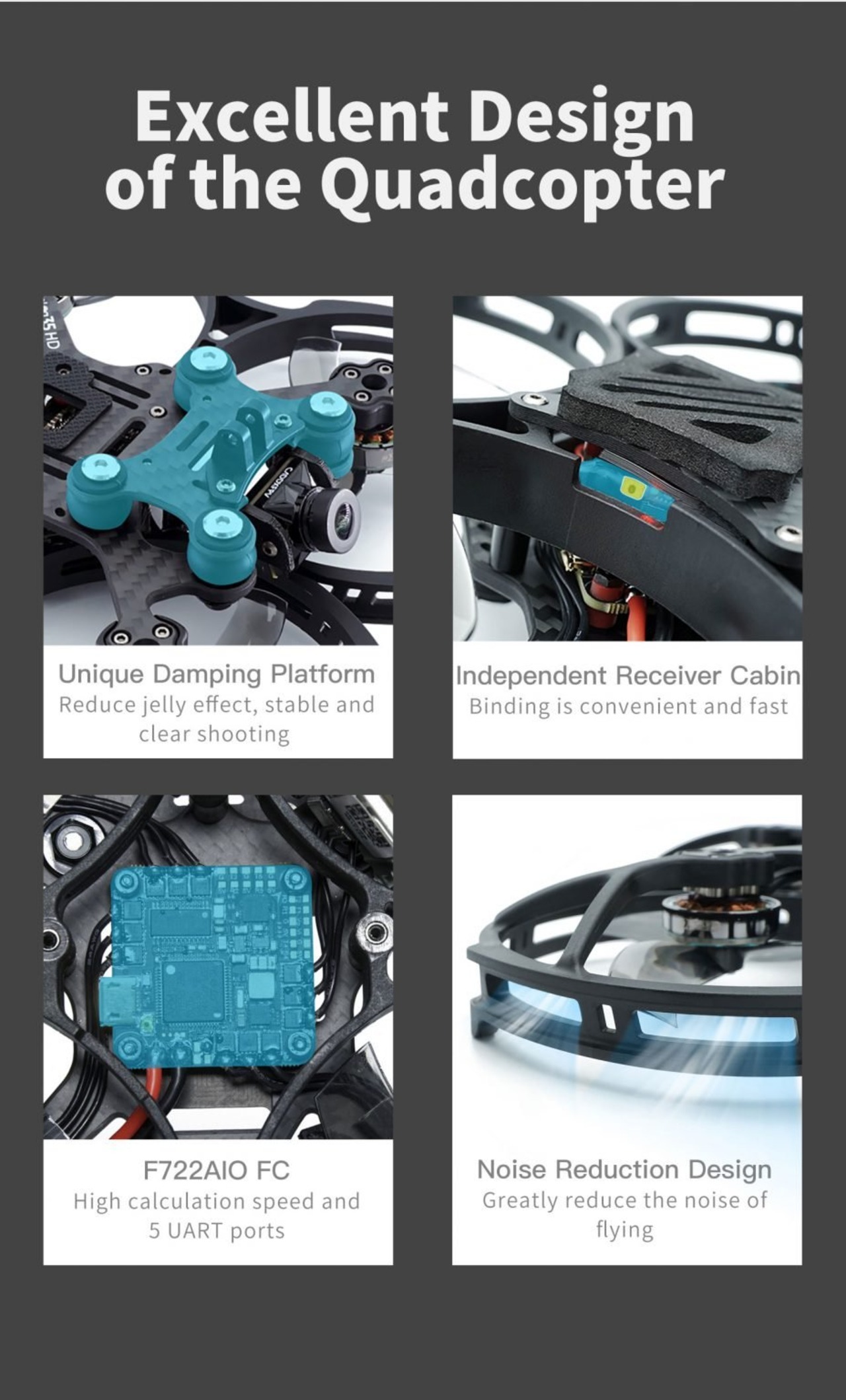 クワッドコプターの軽量化、飛行フィーリングの向上、機能の拡張を追求し、すべてのパイロットに素晴らしい視覚体験と幸福をもたらします。