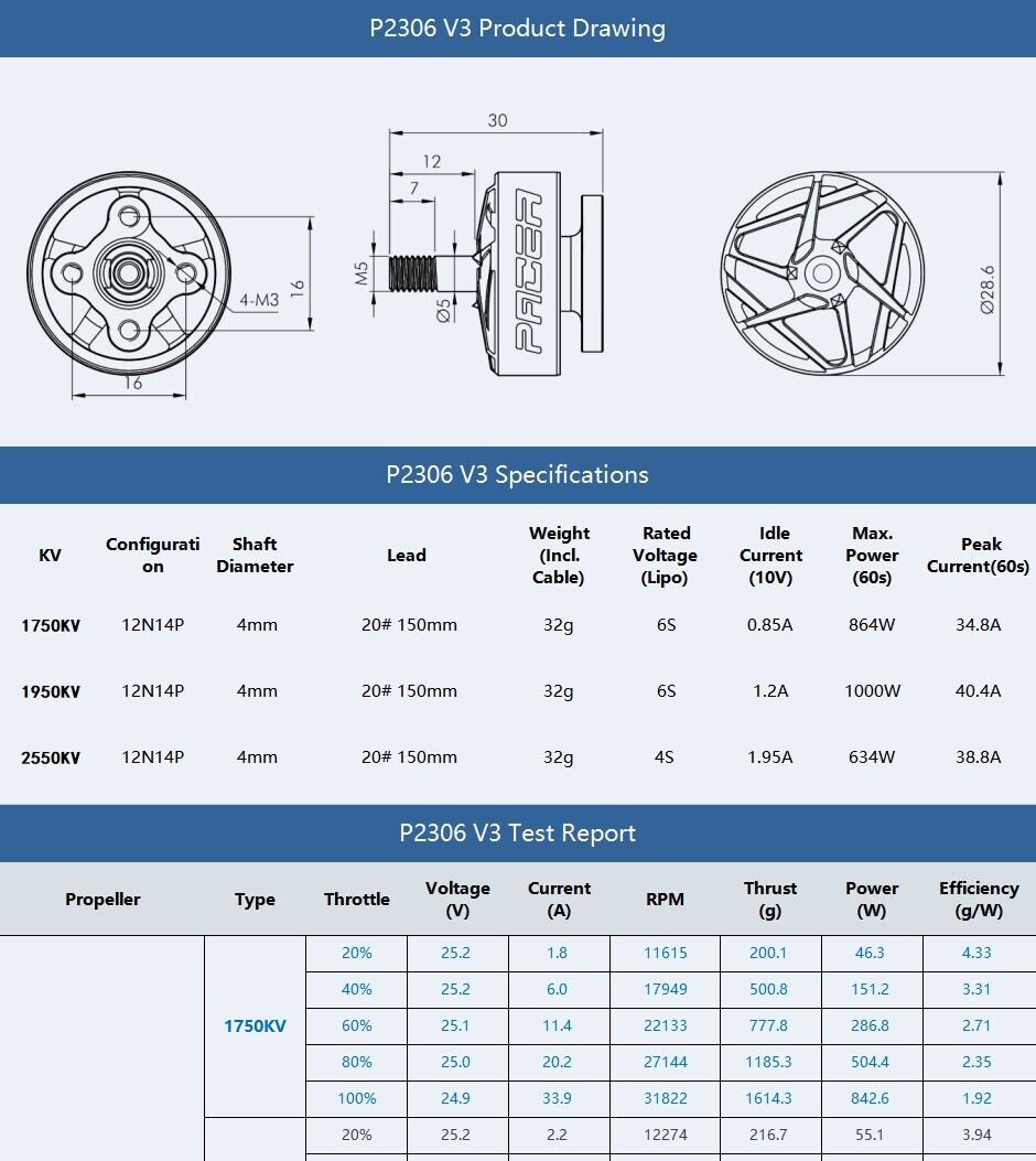 T-MOTOR PACER 2306-1750/1950KV motor V3 Silver/Orange 1pcs