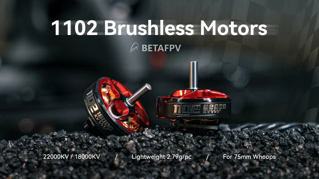 1102 18000KV モーターで 75mm whoop ドローンを飛ばすパイロットの場合、モーターを 22000KV にアップグレードするのは良い選択です。