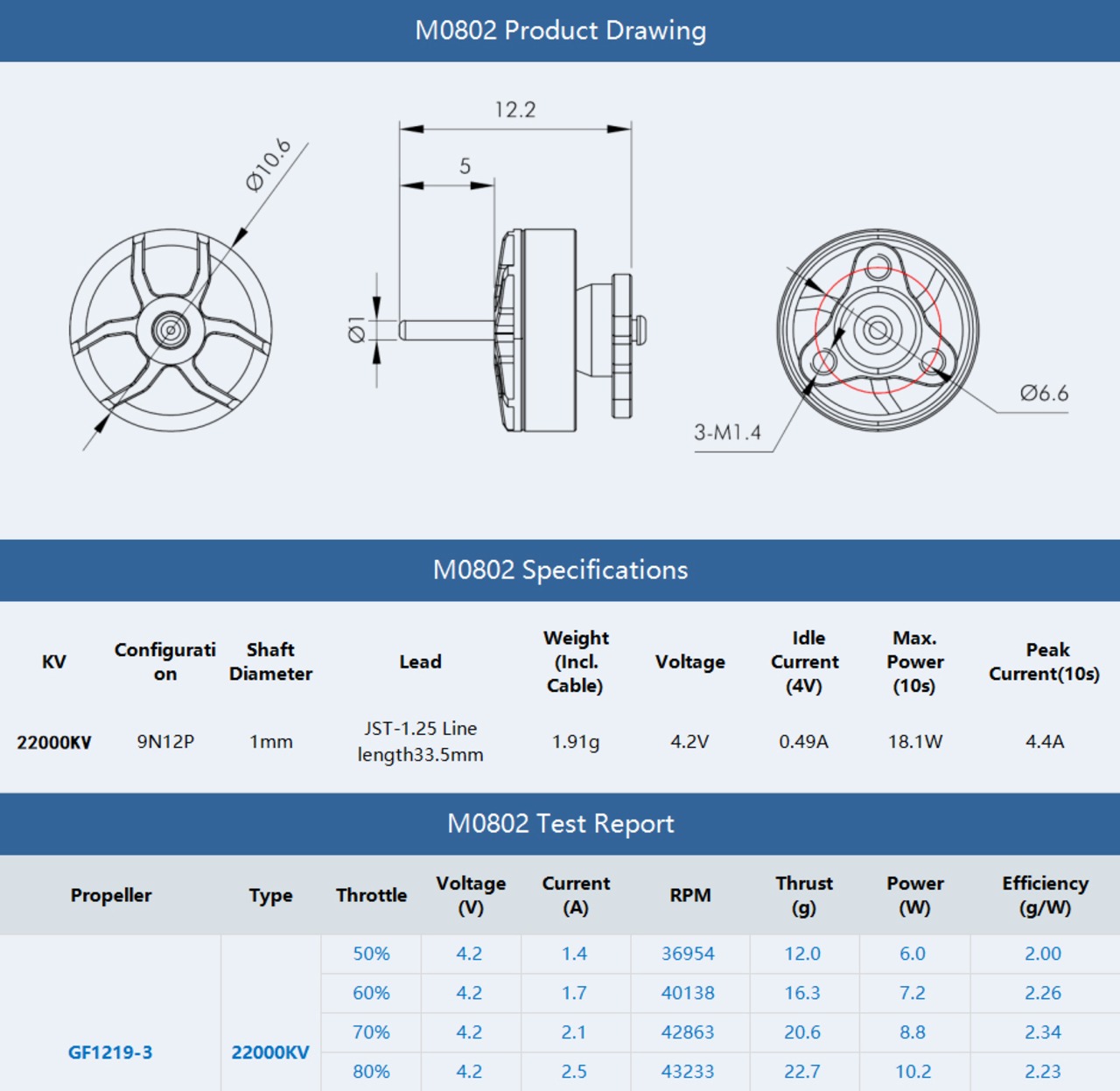 T-MOTOR M0802-22000/25000KV motor 1pcs
