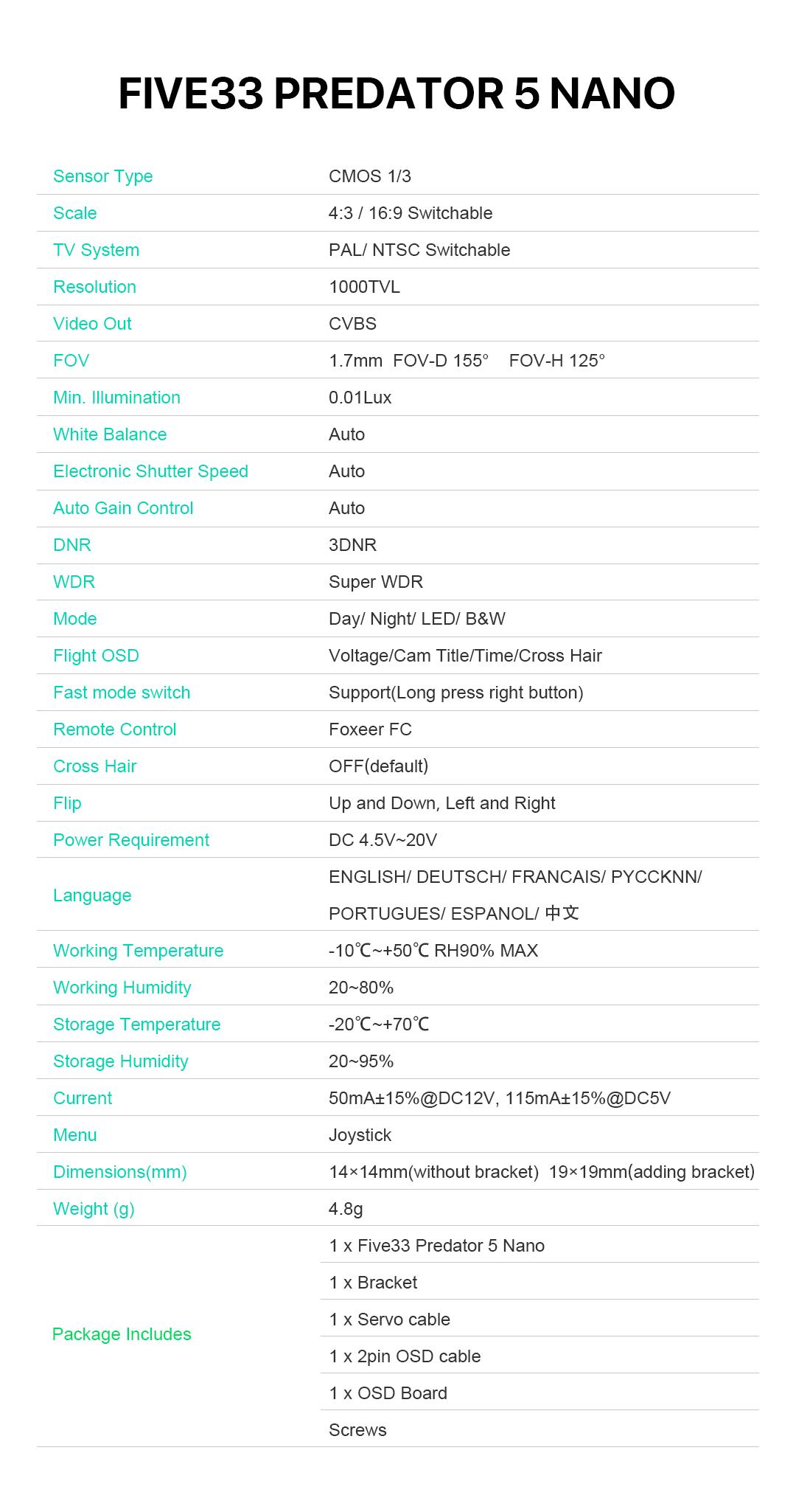 FOXEER PREDATOR5 NANO FIVE33 EDITION HV Flip NTSC camera