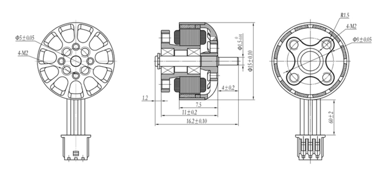 モーター寸法(直径*長さ):Φ15mm*16.2mm
