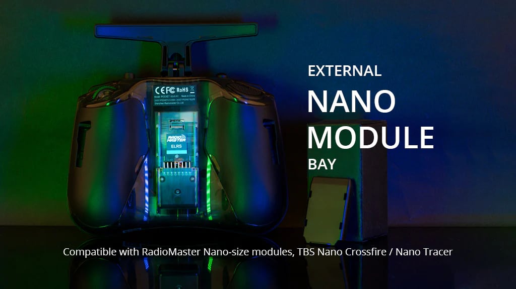 RadioMaster NanoサイズモジュールおよびTBS Nano Crossfire/Nano Tracerと互換性のある外部モジュールベイ