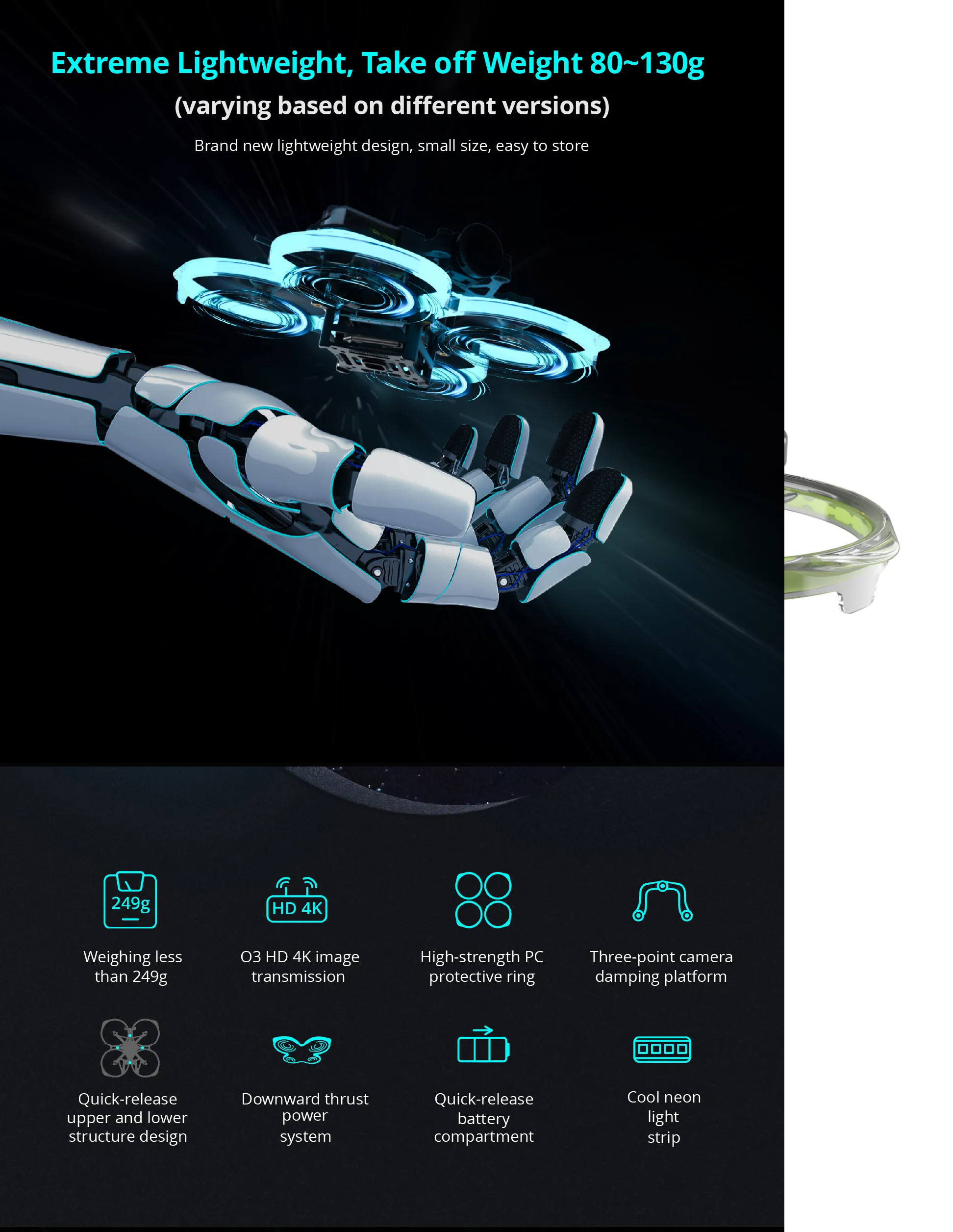 ドローンは軽量で、2S バッテリー、1003 モーター、2 インチ プロペラを搭載しており、十分なパワーとより長い実際の耐久性を提供します。